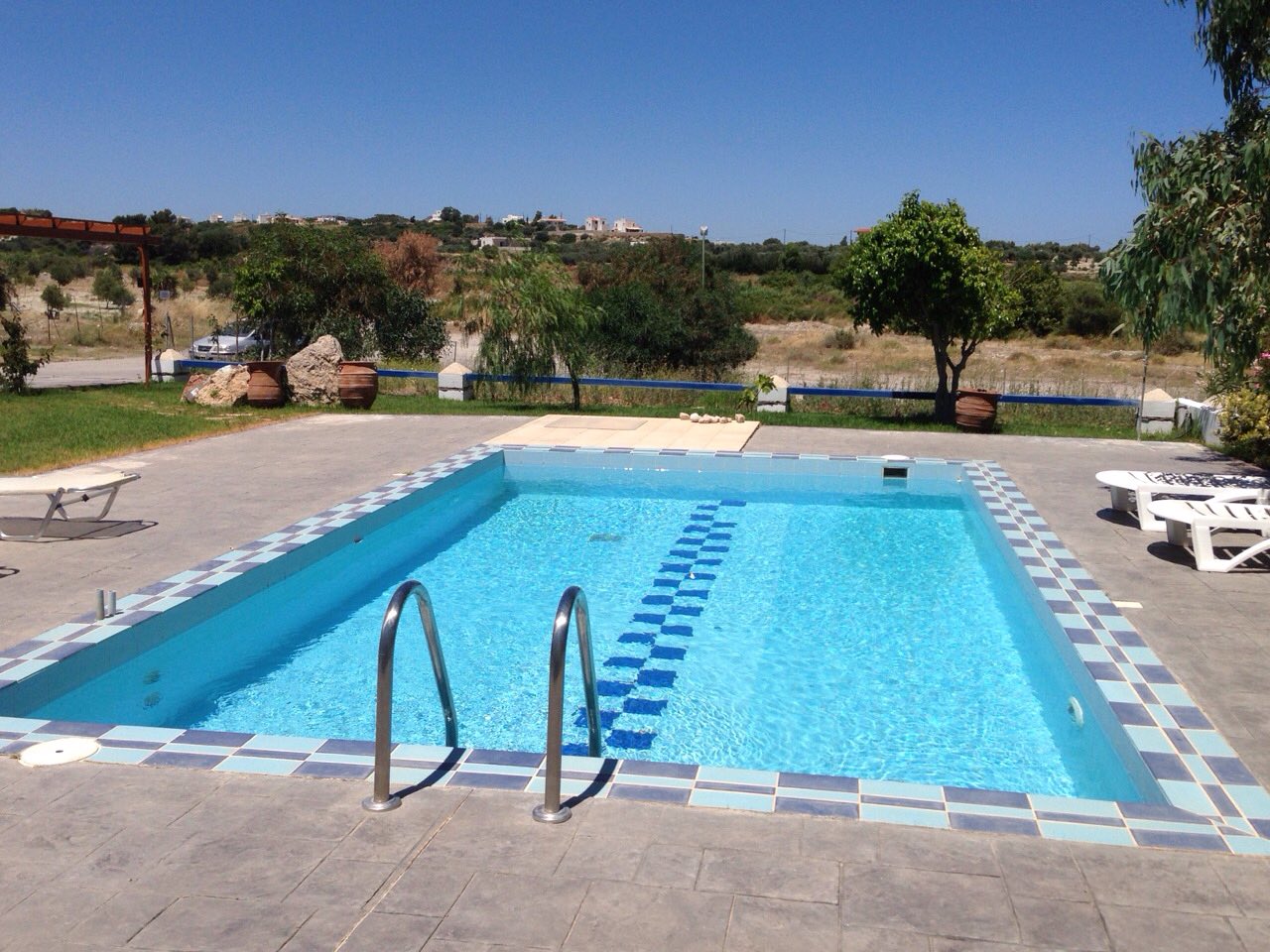 Relax on the comfortable sofas that surround the TV screen. This modern open kitchen is equipped with all the comforts to do catering for your family and friends a breeze. A refrigerator, freezer for all your favorite foods. A complete oven and hob integrated dishwasher, dishwasher, microwave, kettle, toaster, juicer and coffee machine are also included in the price. and cutlery, glasses and kitchen utensils. A service area is provided with washing machine, ironing board. Enjoy a dip in the pool which is 8×5 meters in size and 80CM – 1.6 meters deep. big enough to do a few lengths early in the morning or just to cool off in the warmth of the sun. Or cool off in the outdoor swimming pool shower. There are plenty of comfortable sun loungers around the pool with a pergola shading the lounge.